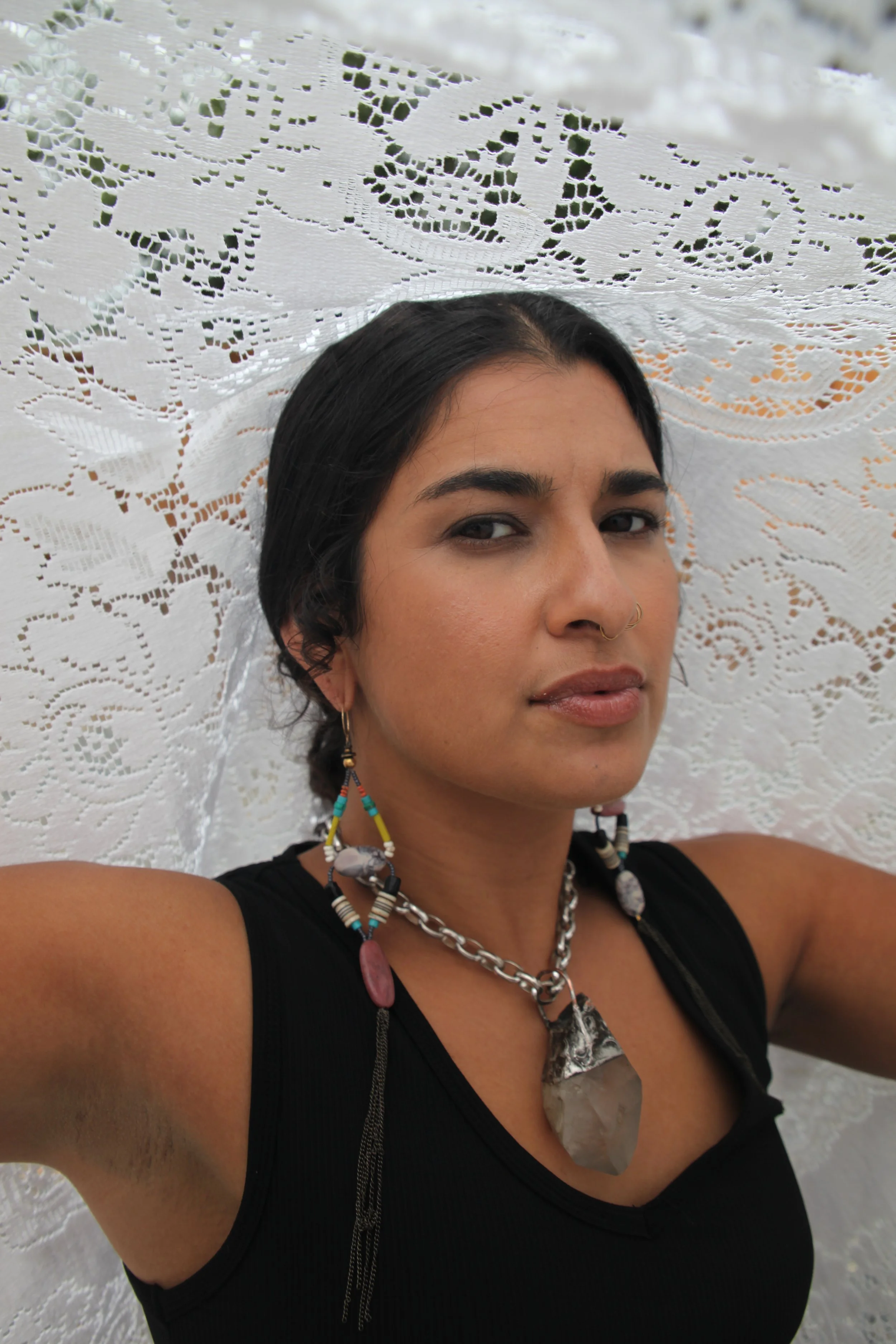 Sydney “Syd” Elizabeth Khan (she/her) is a multidisciplinary artist of Pakistani/American descent who loves to create visual art, adornment, and sculptural portals into other worlds. Her art is a reflection of the way she relates to the world, the experiential interpreted and translated into her reality. Sydney’s work is informed and influenced by her connection to her ancestors and connection to the earth.