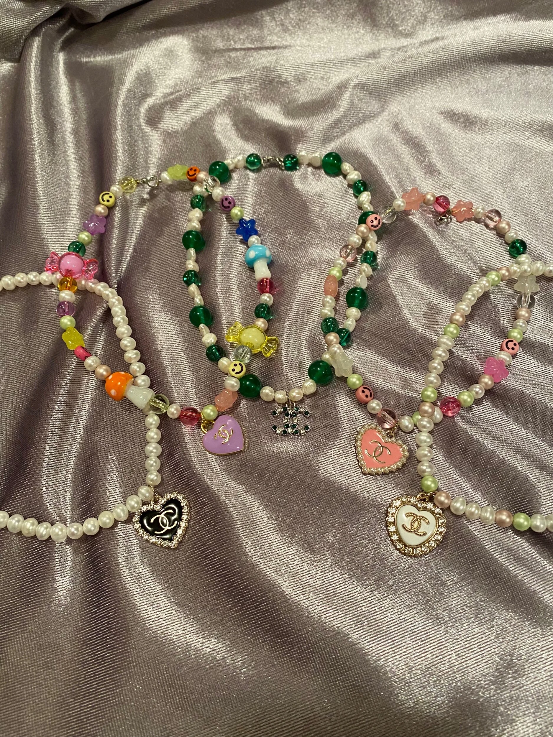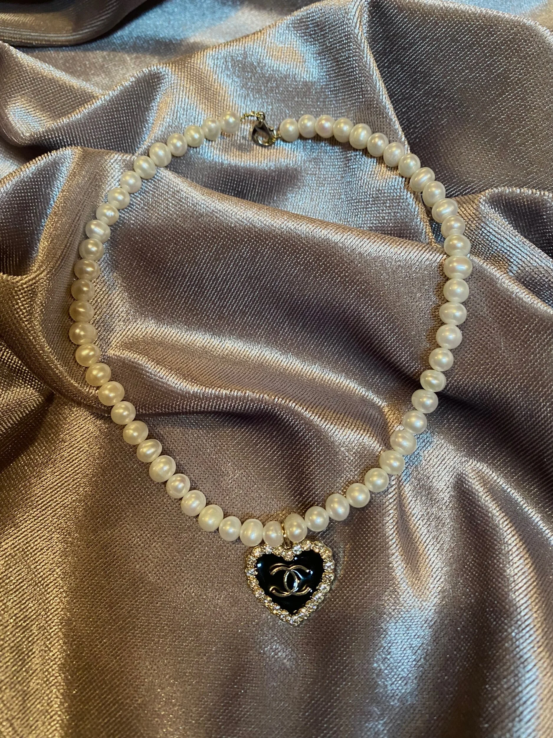 Round, fresh water pearls are paired with a repurposed Vintage Chanel Zipper pull for a classic look.